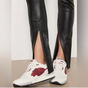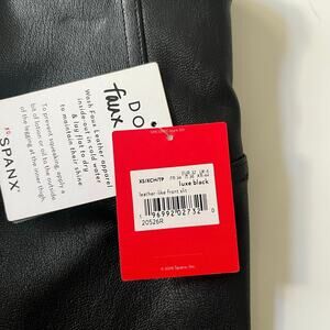 Spanx Leather-Like Front Slit Pants Women's XS in Luxe Black Faux Vegan NWT