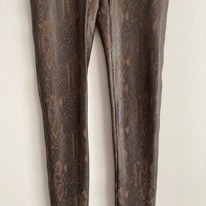 Spanx Leggings Faux Leather Snakeskin Print Brown Pull On Womens Size Small