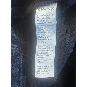Elevate your wardrobe with these stylish Spanx leggings that feature a blue leopard pattern. Made with a blend of comfortable fabrics, these jeggings have a medium wash and are machine washable for easy care. They have a mid-rise waistline and stretchy material for a flattering fit that moves with you.