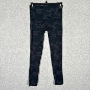 Spanx Leggings Medium Black Blue Camo Look At Me Now 7/8 Crop Tummy Flattening