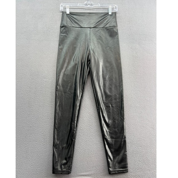 Spanx Leggings Sz S High Waisted Faux Leather Black Shiny Stretch Athleisure