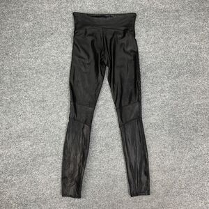 Spanx Leggings Women S Small Black Coated Faux Leather Moto Pull On Ribbed Panel