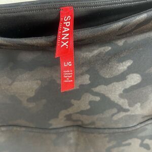 Spanx Leggings Women's Faux Leather Camo Print High Rise Compression Sz L