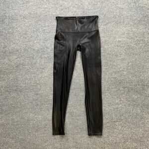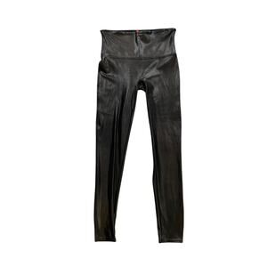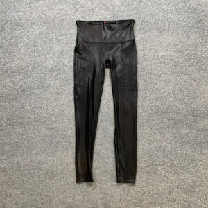 Spanx Leggings Womens L Large Black Faux Leather Coated Skinny Stretch Pull On
