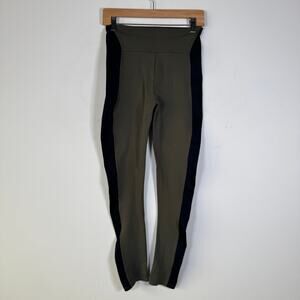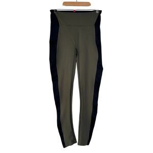 Spanx Leggings Womens Medium Olive Green Black Textured Panel Casual Stretch