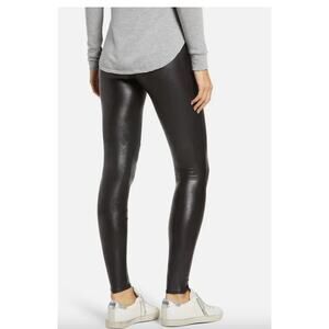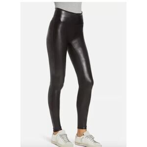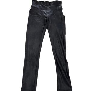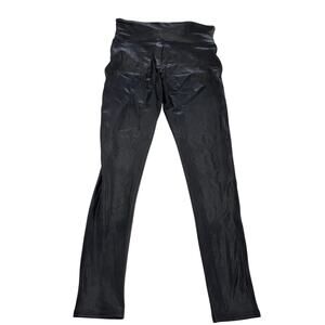 Spanx Leggings Womens Medium Petite Black Faux Leather High Rise Pants 2437Q