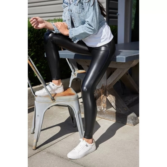 Spanx Leggings Womens Small Faux Vegan Leather Black High Rise Crop Ankle Assets