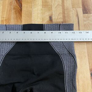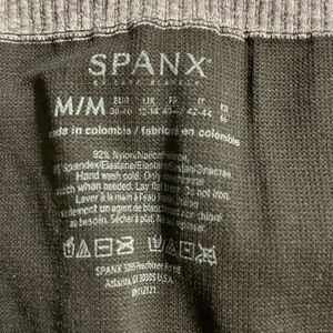 Get ready to sweat in these Spanx workout leggings. The black and gray curved lines add a stylish touch to your activewear while the knit fabric provides comfort during your workout. Lined for added support, these leggings are perfect for any athletic occasion. Available in size M for women, these regular fit leggings are ideal for any exercise routine. Whether running, cycling or lifting, these leggings will keep you feeling confident and comfortable.
