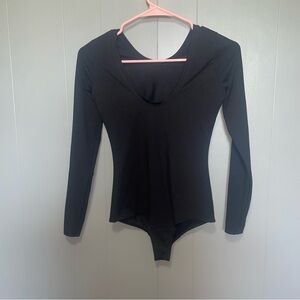 Spanx Long Sleeve Scoop Neck and Back Black Thong Bodysuit XS