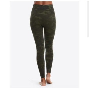 Spanx Look At Me Now Leggings Seamless Stretch Style #FL3515 Dark Green Camouflage Pull On Full Length
