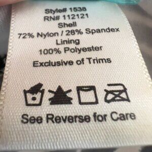 Spanx's Love Your Assets line by Sara Blakely. Featuring an eye-catching black and ivory abstract print, this ruched tankini swim top includes built-in molded cups, adjustable spaghetti straps, and drawstring sides to customize the length. Size XL with a stretchy nylon-spandex blend for a flattering fit.