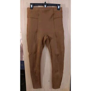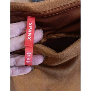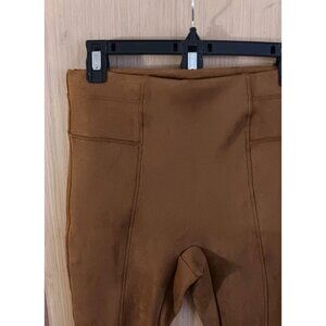 Spanx (M) Faux Suede Leggings Woman’s Rich Caramel Brown High Waist Tapered Leg
