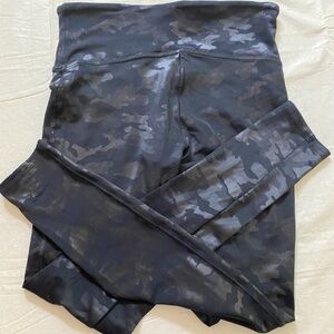 Spanx Matte Black Camo Faux Leather Leggings Women’s Size Medium power waistband