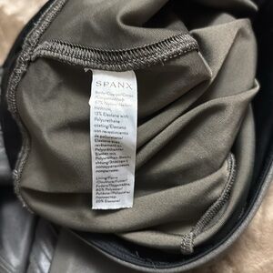 Gunmetal gray Spanx leggings. These have a fun almost moto style pleating to them, and the color gives them an edgy look. You could wear these to workout, or you could just wear them out and about with motorcycle boots the choice is yours. The tag was cutoff but I believe these are an XS based on the measurements.