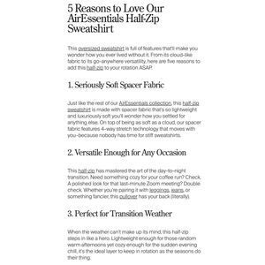 Made with lightweight, soft, and ultra-drapey AirEssentials fabric designed to feel silky against your skin. Oversized fit for easy layering and effortless all-day wear.
