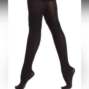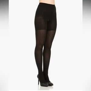 Star power by Spanx Center stage patterned shaping tight. Color is ribbed row black size D, which should fit approximately large/ extra large. New in packaging.