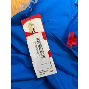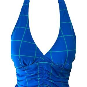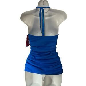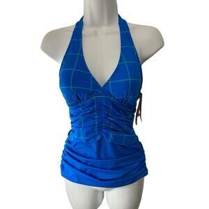 Spanx NWT Ruched Halter Tankini Top Size 6 Electric Blue Geo Bathing Suit Beach