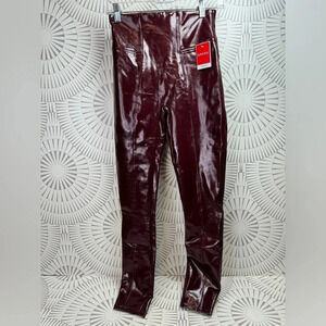 Spanx NWT Women's Size Small Ruby Red Faux Patent Leather Leggings Pant