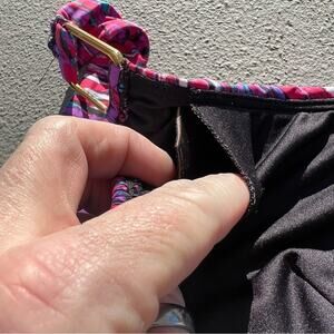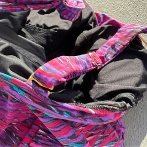 Spanx One Piece Draped Swimsuit Slimming Waist Control pink art deco with gold tone hardware