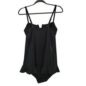 Spanx One Piece Ruffle Swimdress Black Slimming Shaping Swimsuit Size 14