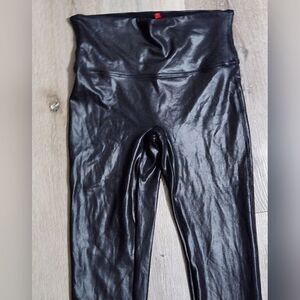 Spanx Pants Womens Large Black Faux Leather Leggings Skinny Pull On High Waist