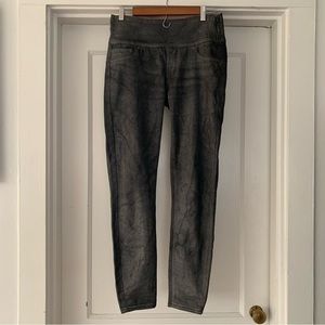 Spanx Pants Womens Medium Silver Metallic Dark Side Zipper Eye Hook Closure