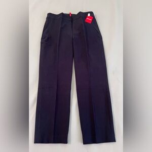 Elevate your wardrobe with these stylish and versatile Spanx pants. These dress pants feature a slimming and comfortable design, complete with a flat front and slim leg style. Perfect for any occasion, whether it's a business meeting, party, or casual outing, these navy pants are a must-have addition to your collection.