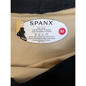Spanx Pencil Skirt Sz M Black Poly Stretch Pull On Lined Elastic Waist Slimming