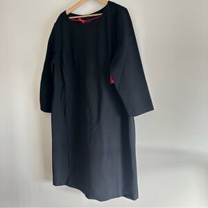 Designed using smoothing premium ponte fabric, this dress is versatile and easy to dress up or down for any occasion, plus its machine-washable.No need to dry clean. Pull on easily and zip yourself. Easy zipper with elongated ribbon attached, so you never have to struggle to zip the back. Smoothing premium ponte fabric. Buttery-soft and 4-way stretch, our signature ponte fabric offers luxurious comfort. Functional pockets (Tip: Dont forget to snip the made-to-be-removed basting stitches). ¾ sleeve with zippers. A-line fit nips at waist for a flattering shape. Size M - 37” from shoulder to hem