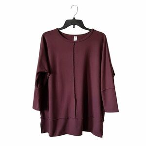 Spanx Perfect Length Sweatshirt Women's Size S Wine Dolman 3/4 Sleeve Pullover
