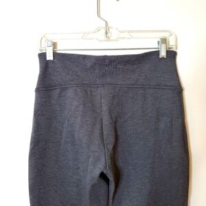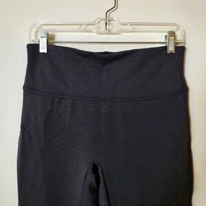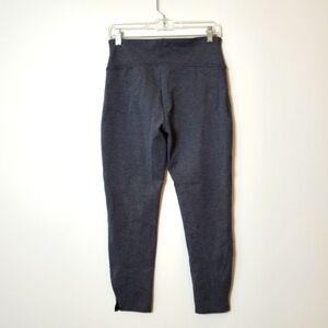 Size M power waistband pointe leggings from Spanx featuring slits at the ankles and their charcol gray colorway.