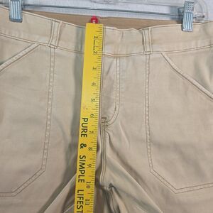 These Spanx Pull On Shorts are a versatile and comfortable option for women in size Large. Made from a blend of spandex and cotton, they offer stretch and tummy control, making them perfect for travel, activewear, or casual outings. The denim chino style and light tan color give them a classic and timeless look. With a mid-rise, flat front, and slash pockets, these shorts are both stylish and practical for all seasons. Easy to care for, they are machine washable for added convenience.