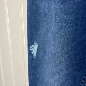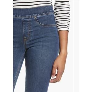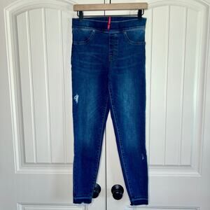 Spanx Pull-On Distressed Jeans Size Medium Frayed Hem Skinny Ankle Denim