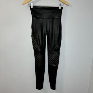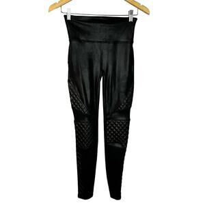 Spanx Quilted Faux Leather Moto Legging Black Stretch Slimming Women's Small