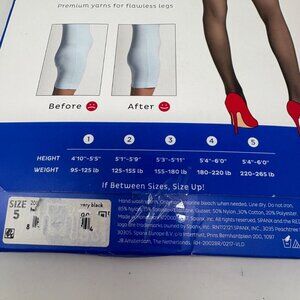 The Spanx Red Hot Shaping Sheers Pantyhose in Size 5 are sleek and supportive pantyhose perfect for a variety of occasions from everyday to formal. Made from a combination of nylon and spandex, these black pantyhose feature a comfortable waistband and shaper shorts for added support. With a full toe and sheer opacity, these pantyhose provide a classic and timeless style suitable for all seasons. Ideal for travel, wedding, party, or workwear, these Spanx pantyhose are a must-have addition to any woman's wardrobe.