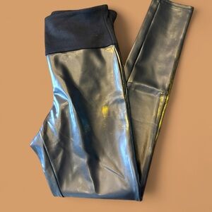 Spanx Red Hots NWOT size medium faux leather black/gold accent leggings