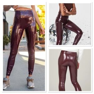 Spanx High Shine Smoothing Patent Leather Fabric Leggings. Ankle Length. Dark Ruby Color. Approx measurements Size Large Waist Laid Flat 14.25”, Inseam 28”, Medium Waist 13.5”, Inseam 27.5. New with Tags🚭