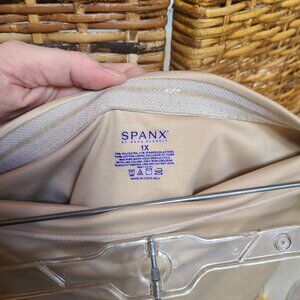 The product is a pair of Spanx Sara Blakely high waist slimmer briefs in beige, size 1X. Made from a blended fabric of 21 spandex and 79 polyester, these shapewear briefs feature a firm compression level, specifically designed for slimming and contouring the waist and body. The high-waisted style, coupled with the opaque material and solid color, provides a comfortable and sleek fit for women looking to achieve a more flattering silhouette. The brand Spanx, known for its quality and innovative undergarments, ensures a slim fit and comfortable experience for the wearer.
