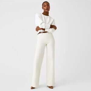 Spanx Seamed Front Wide Leg Jeans Size Large Ecru