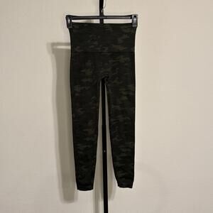 Spanx Seamless Leggings Green Camouflage Shaping Stretch Womens -Large