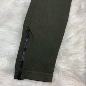 Spanx seamless side zip leggings. Women’s size medium. Olive green color. 94% nylon. Black zipper accents on both legs.