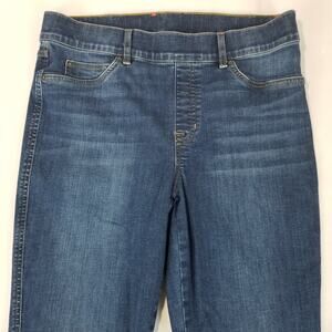 Spanx Shape Jeans Size XL Petite 20327Q Everywhere Flare Raw Hem Midnight Shade They feature a medium wash, a 28.5-inch inseam, and are machine washable. The jeans are designed in a flared style, made of denim fabric in a blue color. Perfect for a stylish and comfortable look. Missing tag.