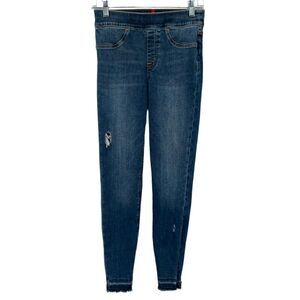 Spanx Shape and Lift Distressed Skinny Jeans Mid Wash XS Blue
