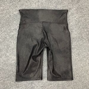 Spanx Short Women M Medium Black Faux Leather Wide Waistband Ledershorts Pull On