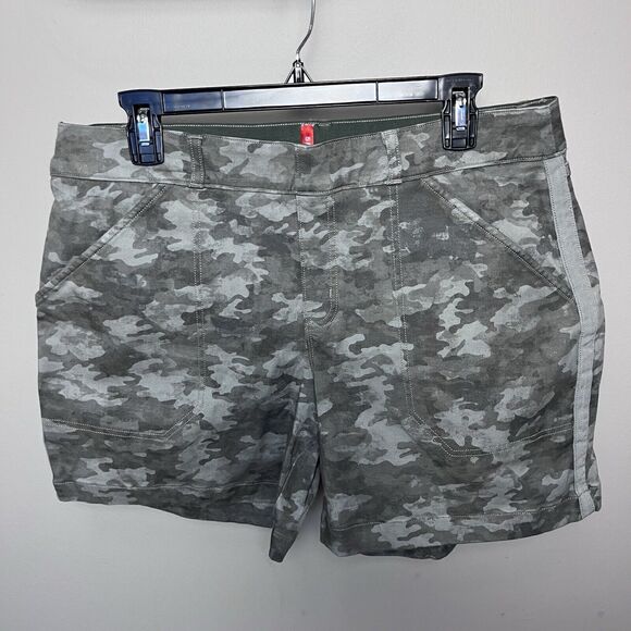 Spanx Shorts Womens Sz XL Green Gray Camo Elastic Waist Pull On Pockets Stretch