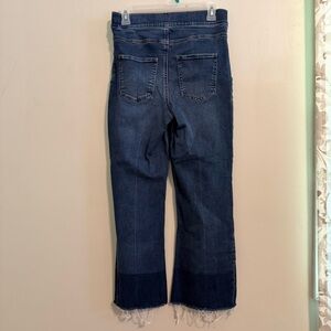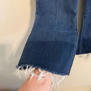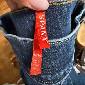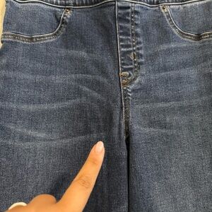 Very cute size medium spanx denim dip dye cropped flare with raw hem. Measurements in photos. There is a slight wave in the denim next to the faux zipper and it’s pictured