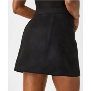 Spanx Skort Womens XL Black Faux Suede Mini A Line Shapewear Pull On Skirt
