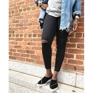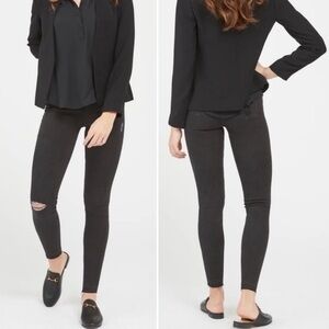 Spanx Small Black Distressed Pull On High Rise Skinny Jeans