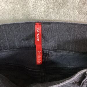Spanx Stretch Straight Leg Jeans - Petite Large - Black - High Rise - 25" Inseam