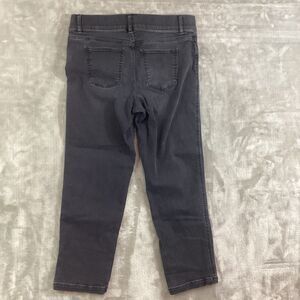 These jeans are in great condition! They are stretchy, straight leg, and solid black. Petites size Large. Please note measurements below for exact fit.